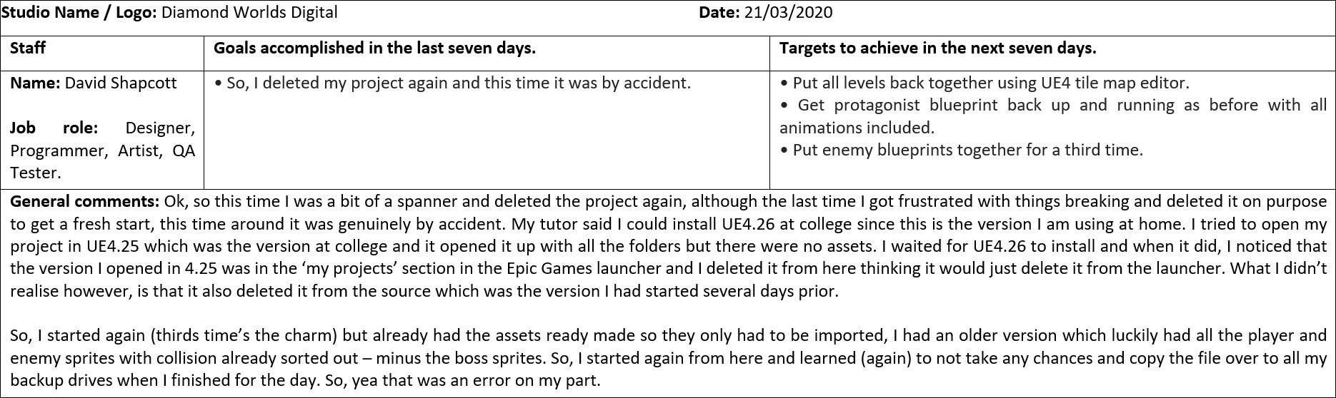 Below I have added multiple screen shots of sprint sheets that I have completed, the first one being just before the end of term one. The rest I have done weekly from the 13th January, and I will update it weekly by adding a new sprint sheet once it is completed. They show what I have accomplished within the previous 7 days prior to filling it out, and what I want to accomplish within the next 7 days after filling out.